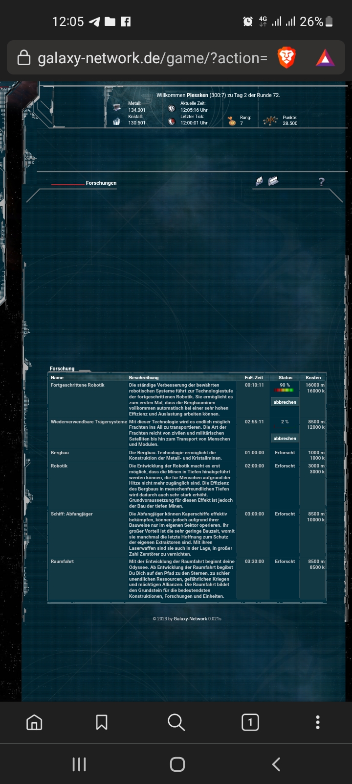 Hallo eben die Forschung angeworfen. Stand direkt bei 90% restzeit 10 min...