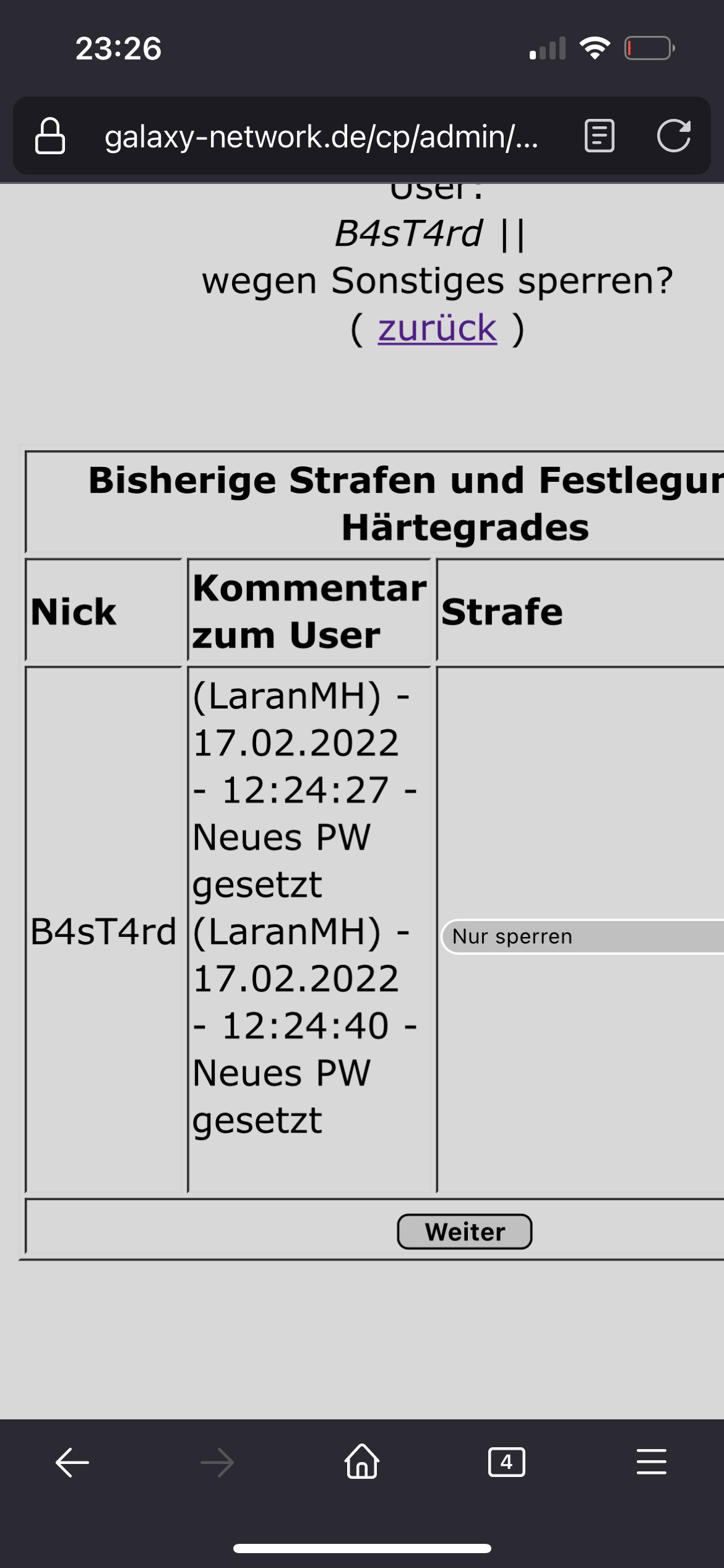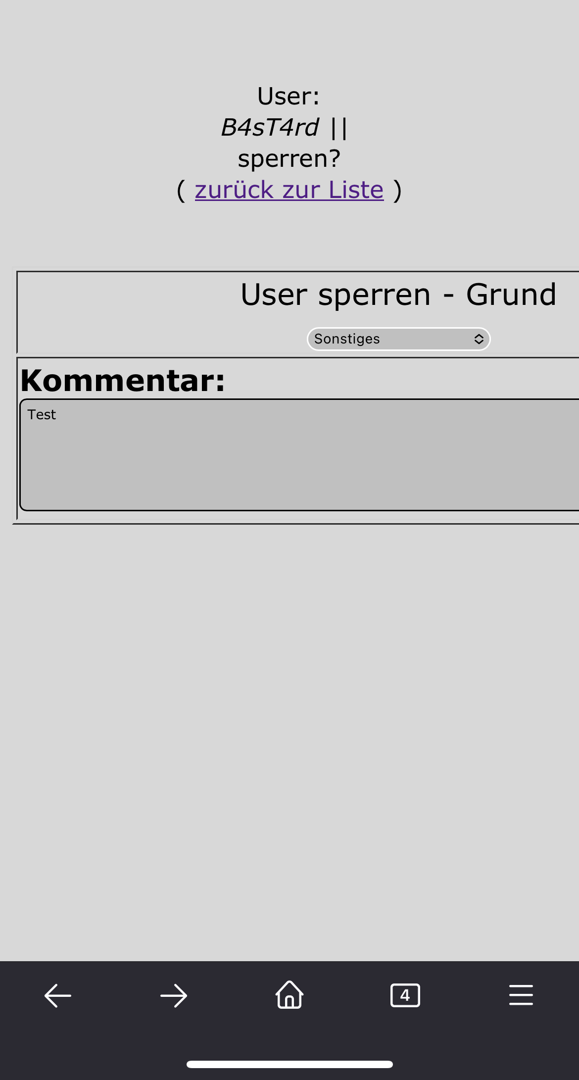 Wenn man einen User sperren will wird nicht der Kommentar den man schreibt eingefügt sondern das was in der Übersicht unten steht! Das sollte anders sein